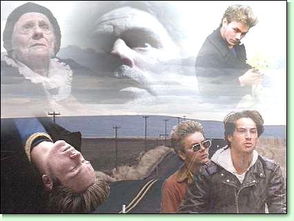 Below is a photo tribute to River, the first is an overlay of River with an Oregon River in the background, his favorite, the Columbia. River's life was devoted to NATURE. Then, two pictures of River from MOSQUITO COAST which we will see, ...followed by a montage of photos from MY OWN PRIVATE IDAHO which you really should try to see for its important social and artistic content.
